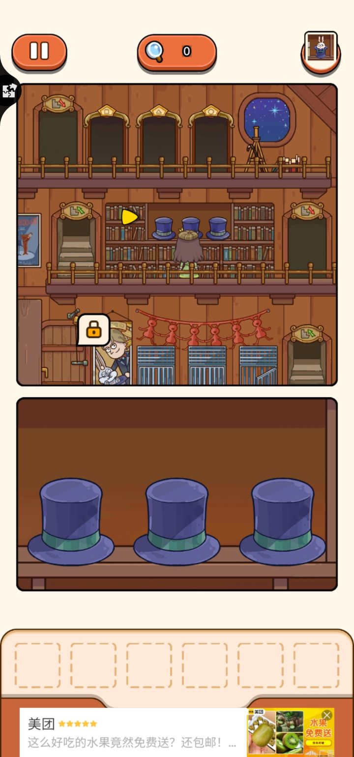 44. 小说家的遗稿先打开灯(从左至右数:1.一排第一个,2.三排第三个,3.三排第一个,4.二排第二个,5.一排第三个),再打开书架前的保险柜拿走套娃和第一张纸片。走到二楼,打开套娃,到最后一个时把之前拿到的绿色套娃放上去,即可拿到第二张纸片。到三楼点击望远镜里的星空图片,回到一楼宝箱处,根据星空图提示点击宝箱机关,拿到第三张纸片。走到桌前把所有的纸片按序和书页拼合起来即可。45. 魔术师的