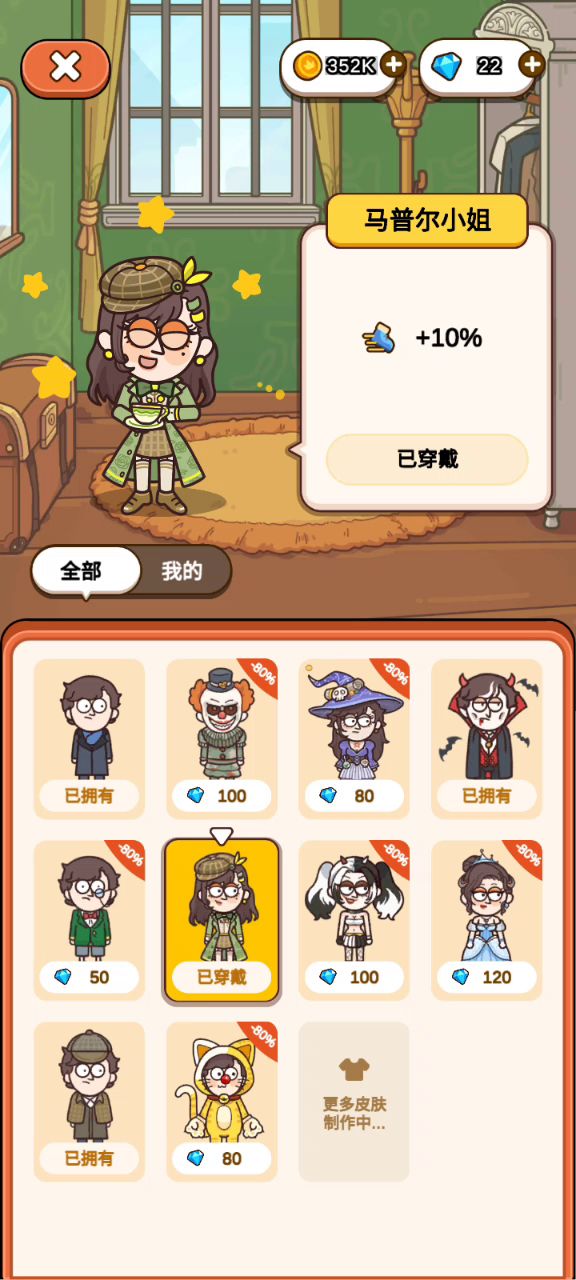 玩了大概也有四五天了,理解不氪金植入广告这种方式,案件关卡有点略少,刚开始是当做一个养成放置来玩的,不过发现案件模式还是挺有意思的,个别迷点个人还是过不了😭😭可能是我比较菜,看广告过了两,还是比较期待的😝😝加油💪💪💪