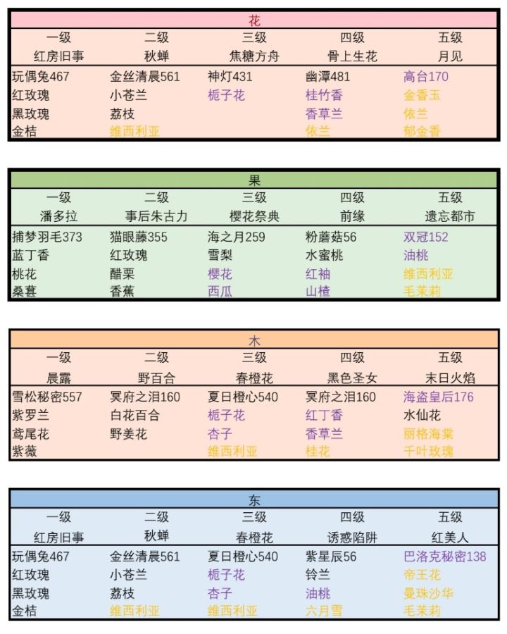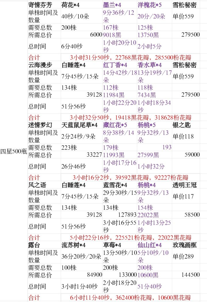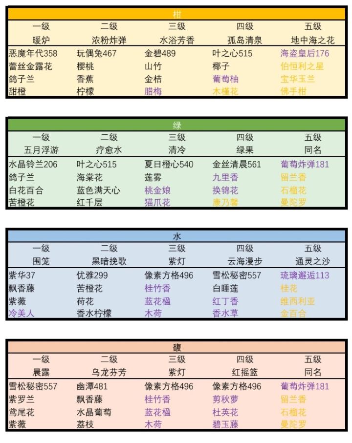 4、五星香水基本上都是极品种子,没有种子价格,这个我觉得只能是自己库存有哪个就做哪个了。。