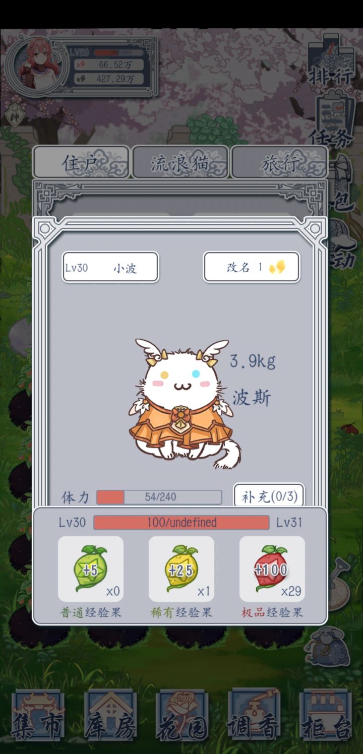 未定义可还行,制作组考虑一下给猫猫等级加个上限吧,或者让猫猫可以继续升级,现在这样可以喂经验果但不能升级。