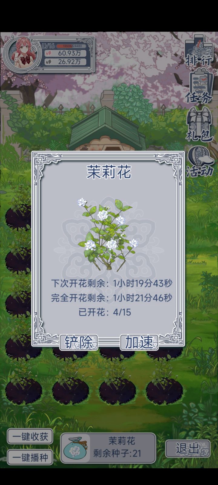 反馈bug,茉莉花时间变一个多小时。收了几次就换页面刷瓶子,回来发现变一个多小时了,就离谱。