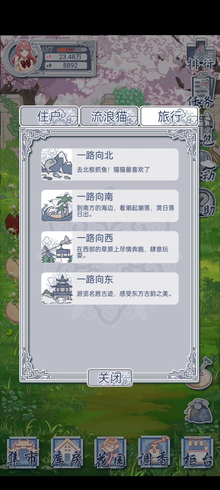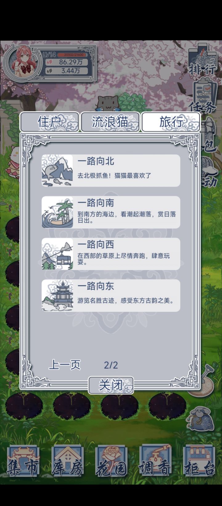 昨天晚上安排猫猫去旅行了,怎么回来啥都没带???另外,昨天有个更新,更新前让猫猫去旅行了,更新完登陆进去,发现猫猫带回来的东西从三个变成了一个。。。现在则是没有了。。。