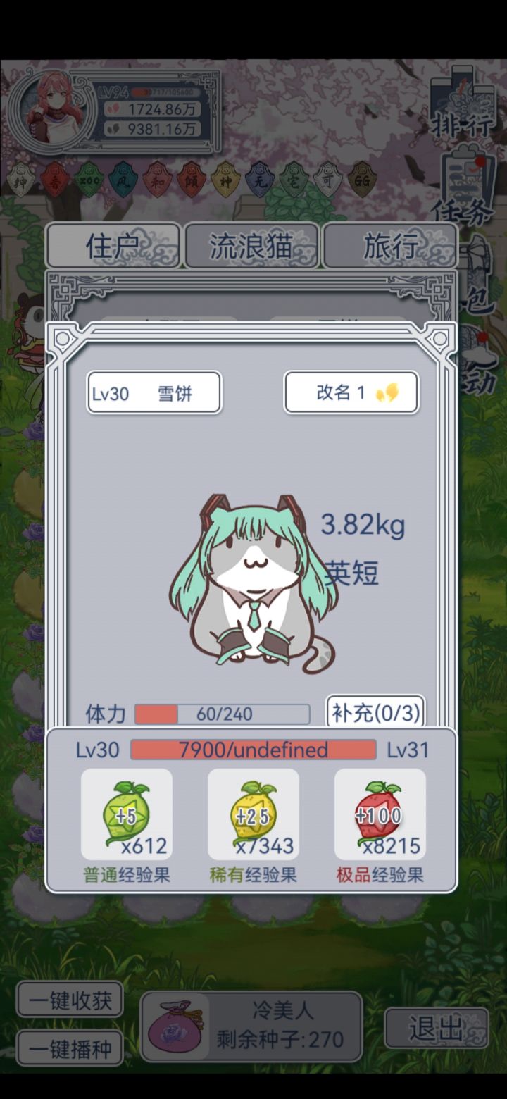 可以加个种子卖掉功能吗?猫早就满级了经验果也存了许多。现在经验果种子完全没用。能不能搞个卖掉或者扔掉?一直占着第一格很不爽哩