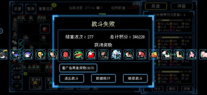 符文实验室无脑阵容,100波后开始用神器点暴击方面,应该可行