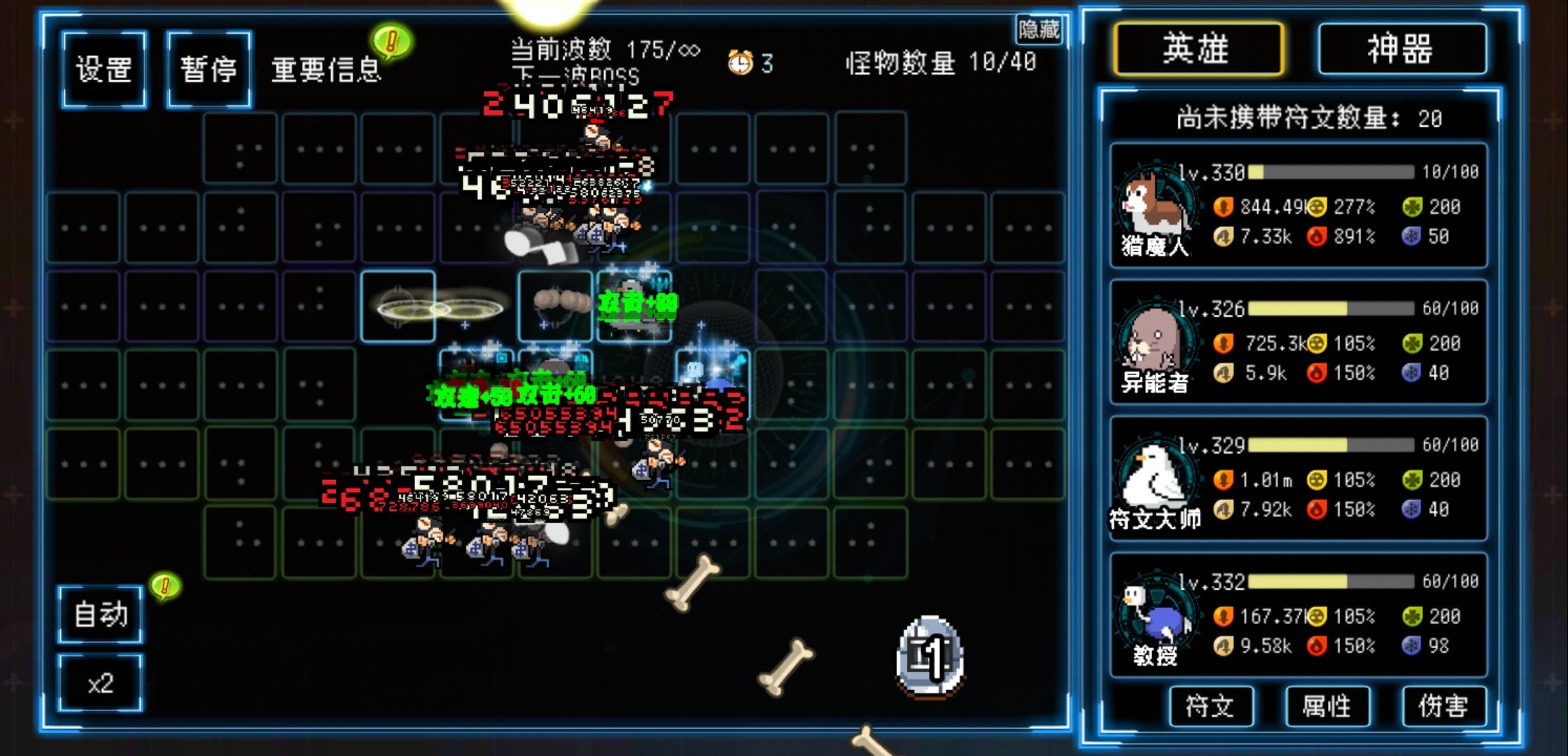 再不出自选符文,真退游了,打一小时,134波出加距炮,205波失败了都没出爆伤符文,心累