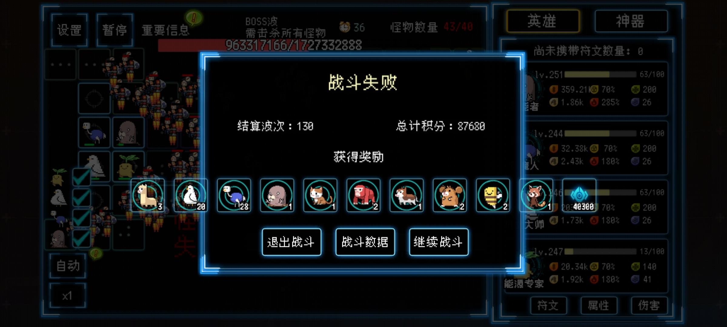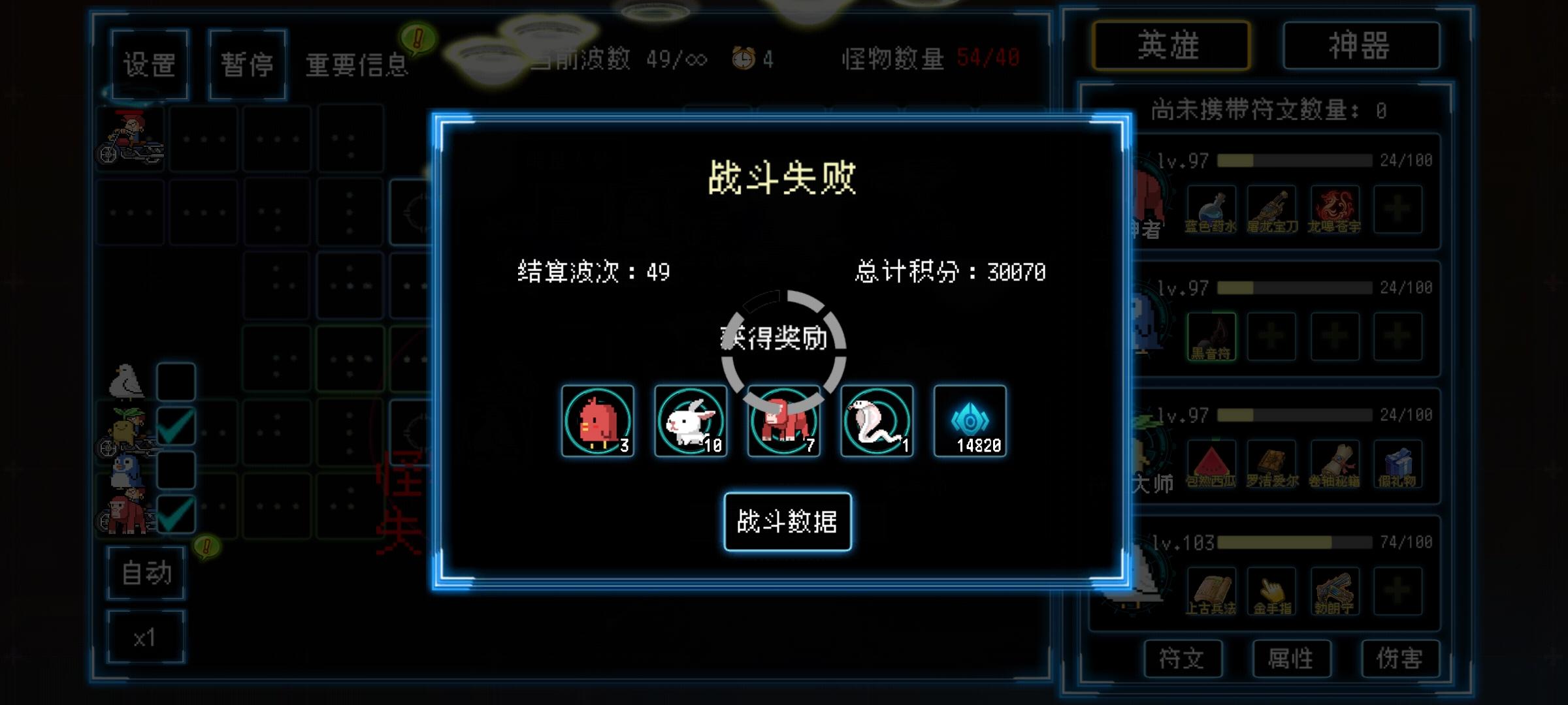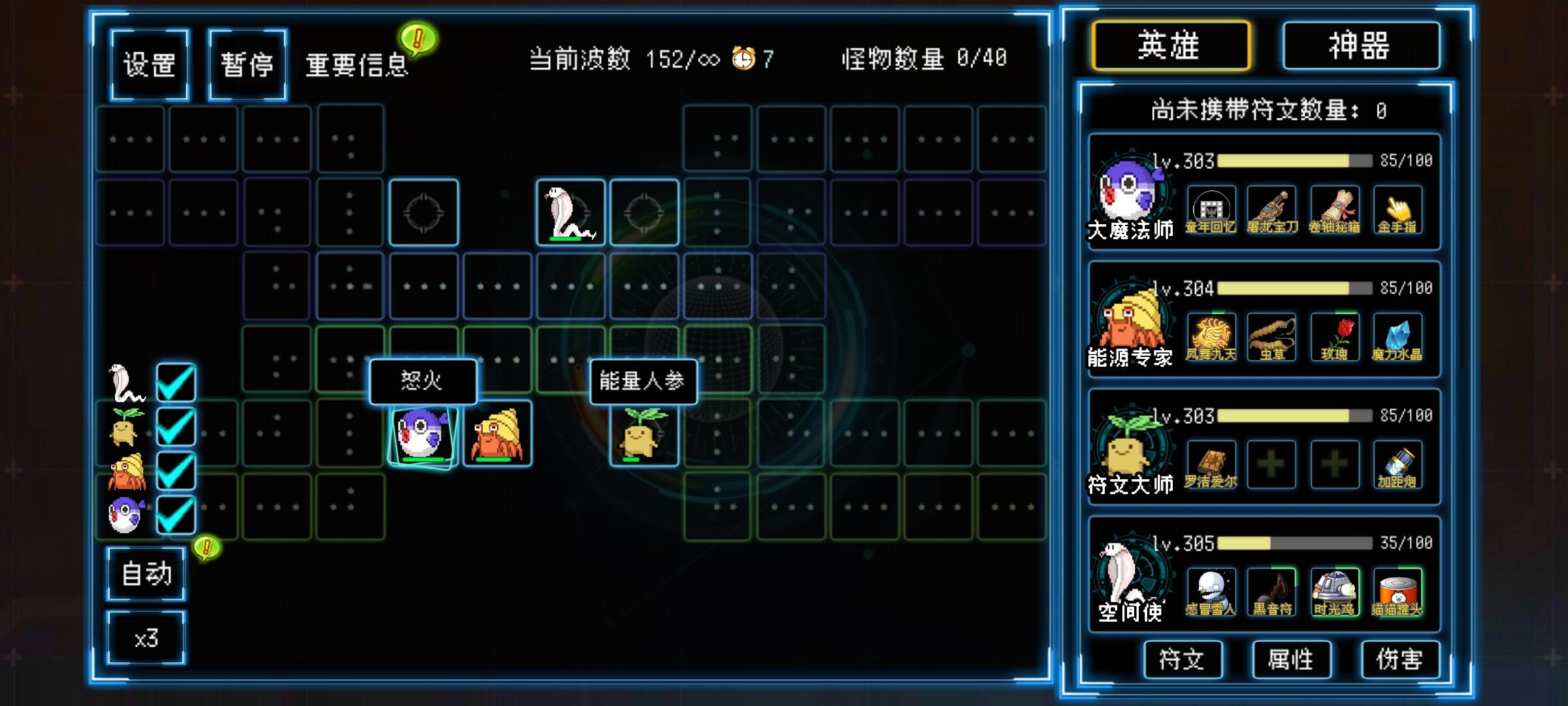 感觉目前这个情况,在更新可能作者也是越来越头大了,新的东西越多越卡,玩家越强越打到后面越卡,一把动辄几小时,太崩溃了,有个建议,能不能增强波数的增幅,蛋出现间隔减少,加快成型,怪物增幅加大,压缩玩家的时间,不然我觉得再过一阵子就搞不下去了