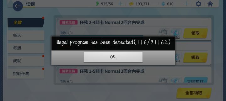 求救,玩国际服的兄弟有出过这个检测到非法程序吗,弹窗后点确定就闪退,不点过几秒自动退出,这个有解决办法嘛