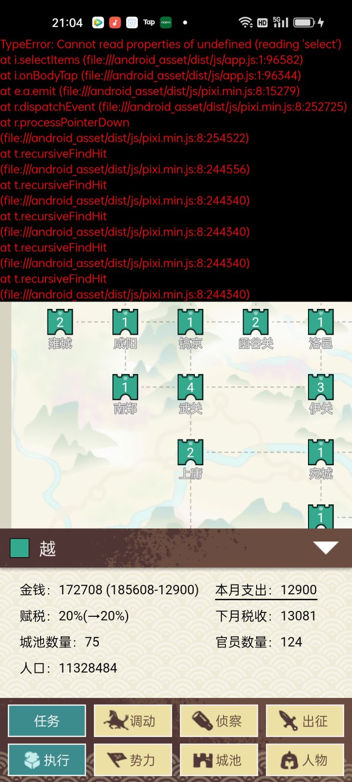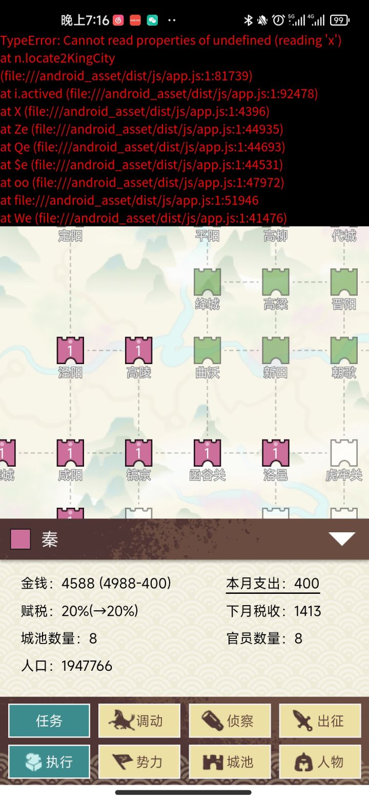 在回合结束时,点击自己的城市,点进去,会卡成这样