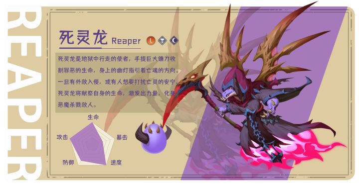 #萌龙小百科#龙名:死灵龙品质:传奇龙(L)龙种:幻想种元素属性:钢系&黑暗技能简介:一技能【钢爪】,对敌方造成钢属性伤害的单体攻击;二技能【死神镰刀】,对敌方造成暗属性伤害的单体攻击,并吸取血量;三技能【灵魂献祭】,献祭血量,提高自身攻击。#萌龙信息卡#没有人愿意成为死灵龙的敌人,他是亡灵的指引者、守护者,他的提灯里燃烧着来自地狱的鬼火,别打破表面的平静,你不会想要面对