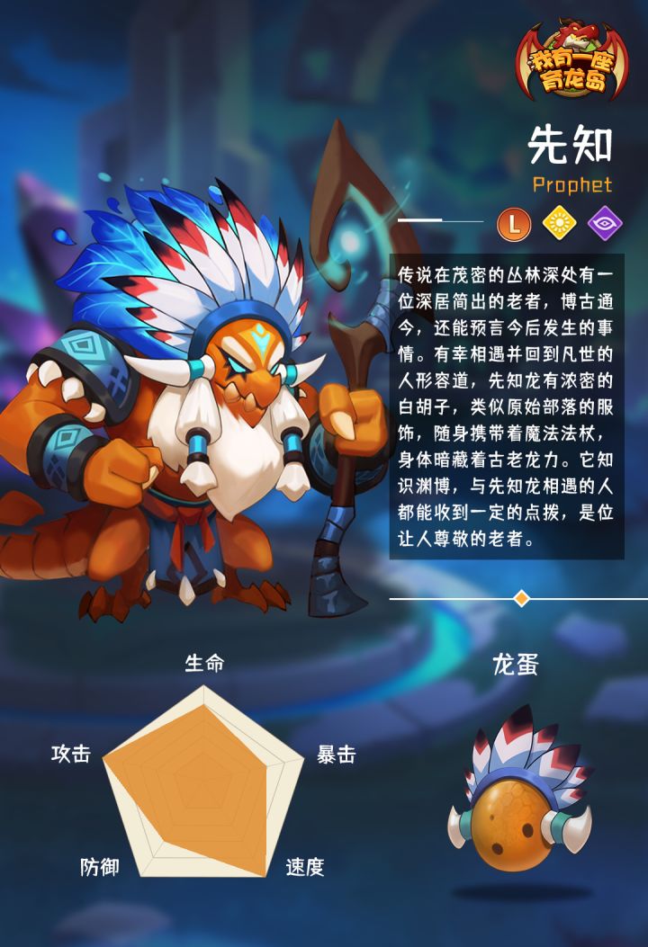 【萌龙信息卡】先知#萌龙小百科#龙名:先知品质:传奇龙(L)龙种:异兽种---心灵荒漠元素属性:光明/心灵技能简介:一技能【心灵震撼】,心灵属性伤害普攻,概率降低敌方暴击;二技能【神圣冲击】,光属性伤害普攻,给友方最低血量龙回血;三技能【神圣宣判】,光属性伤害群攻,降低敌方防御。少年啊少年,当风中隐约传来古龙吟唱的时候,说明龙岛再次降临,不远啦。