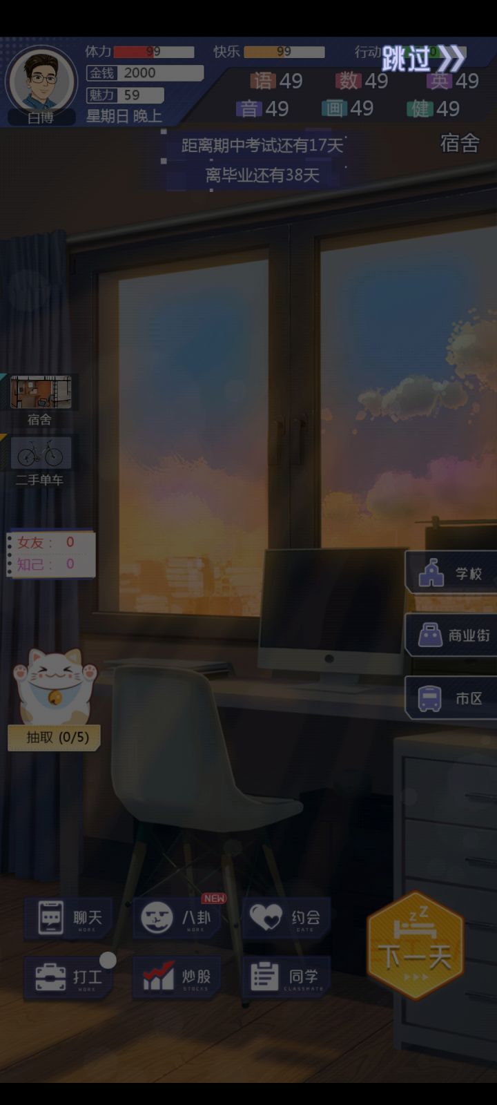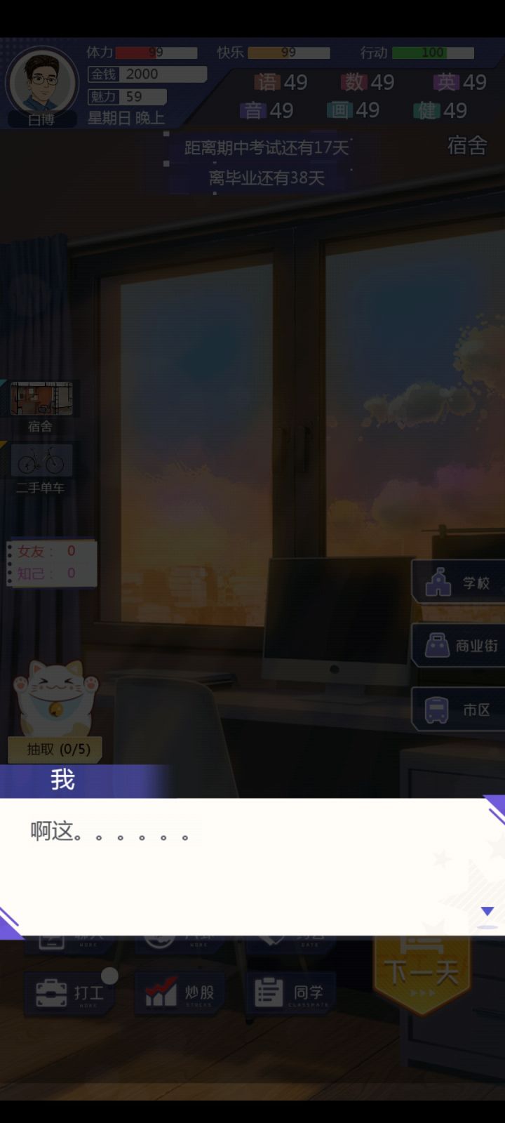 卡出bug了,第一天快速点下一天,再搭讪安静就这样了