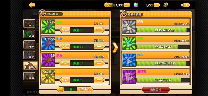 其他颜色材料都上万了,就这个紫色材料隔好几天才能收那么几个。也不应该是实力不够吧,橙色材料都几千了