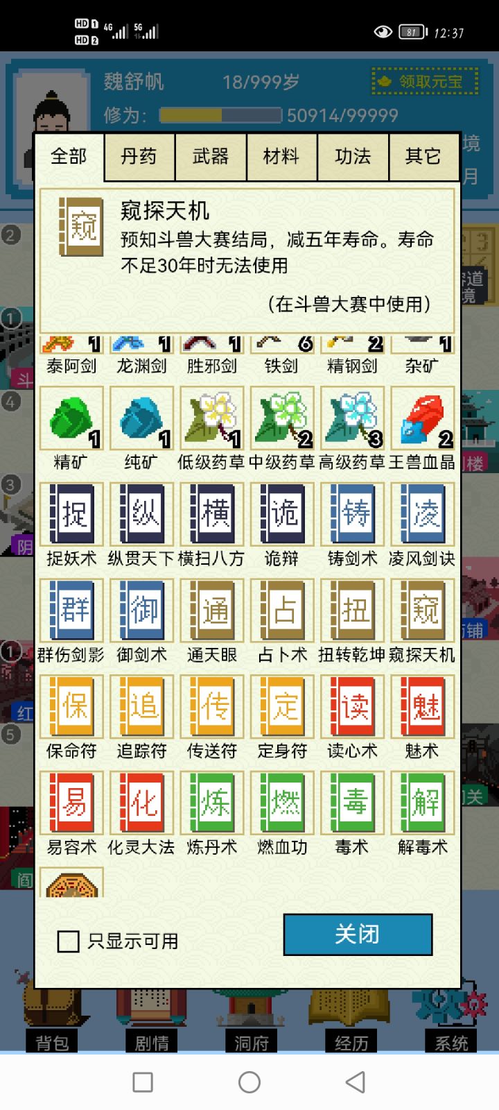 2.加入万剑阁,学铸剑和御剑(修为靠冥想)