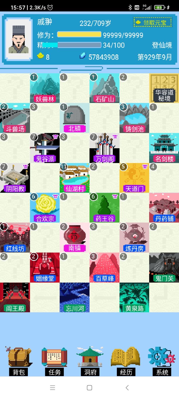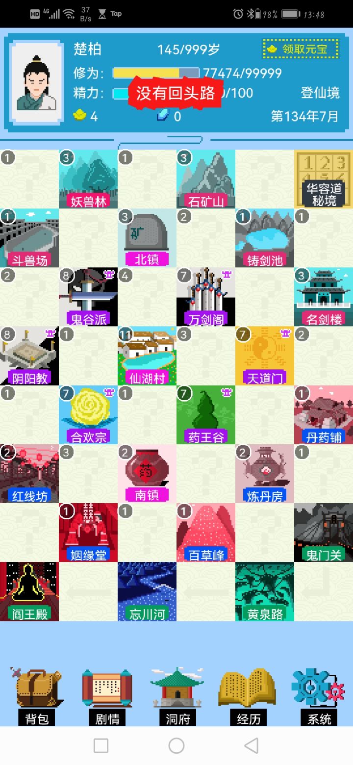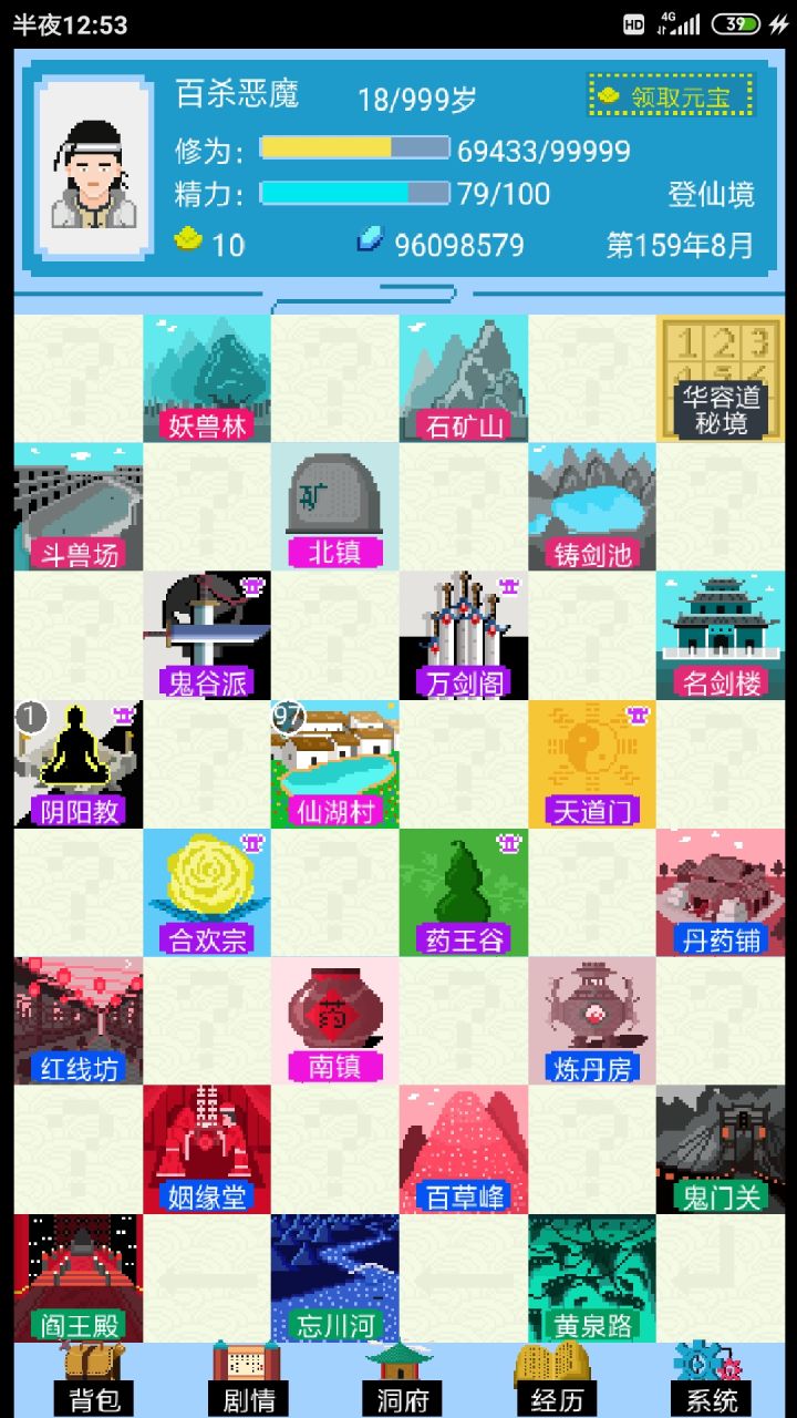 2:先进阴阳教,学会占卜之后跑图白格,,一路占卜走事件跑到右边卖药的买个筑基丹(等级不够钱不够就多转几圈)偏,一路白格去左上da1级妖怪,刷出10个石头进阶,再一路走白格回阴阳教