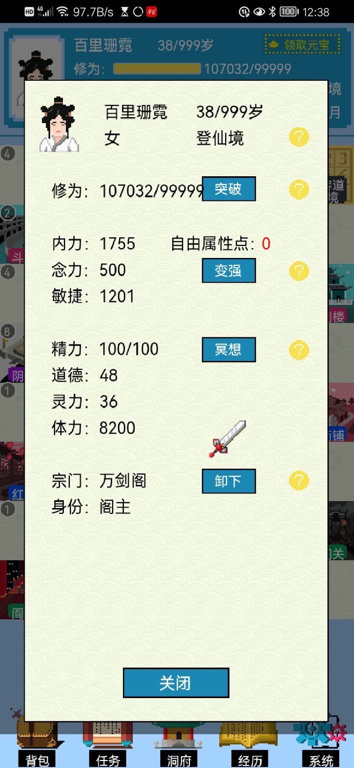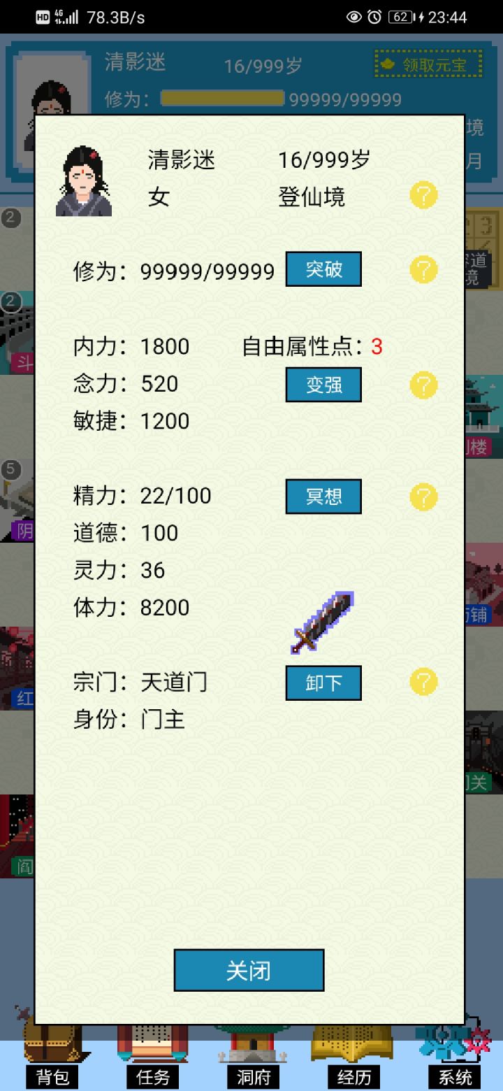 开局建议占那个空榜,闭关十年建议没升级时不要用,300灵石去天道门学习传送府,然后第一世就可以随便玩了😅