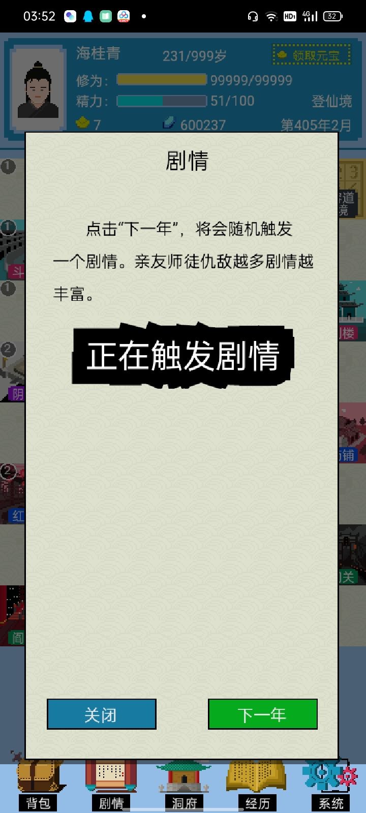有个bug,在一个空白格子上完成一个奇遇后,再前往鬼门关,然后再从鬼门关返回刚刚完成奇遇的地方,蹦出来不是选项,而是刚刚完成的奇遇的结算页面