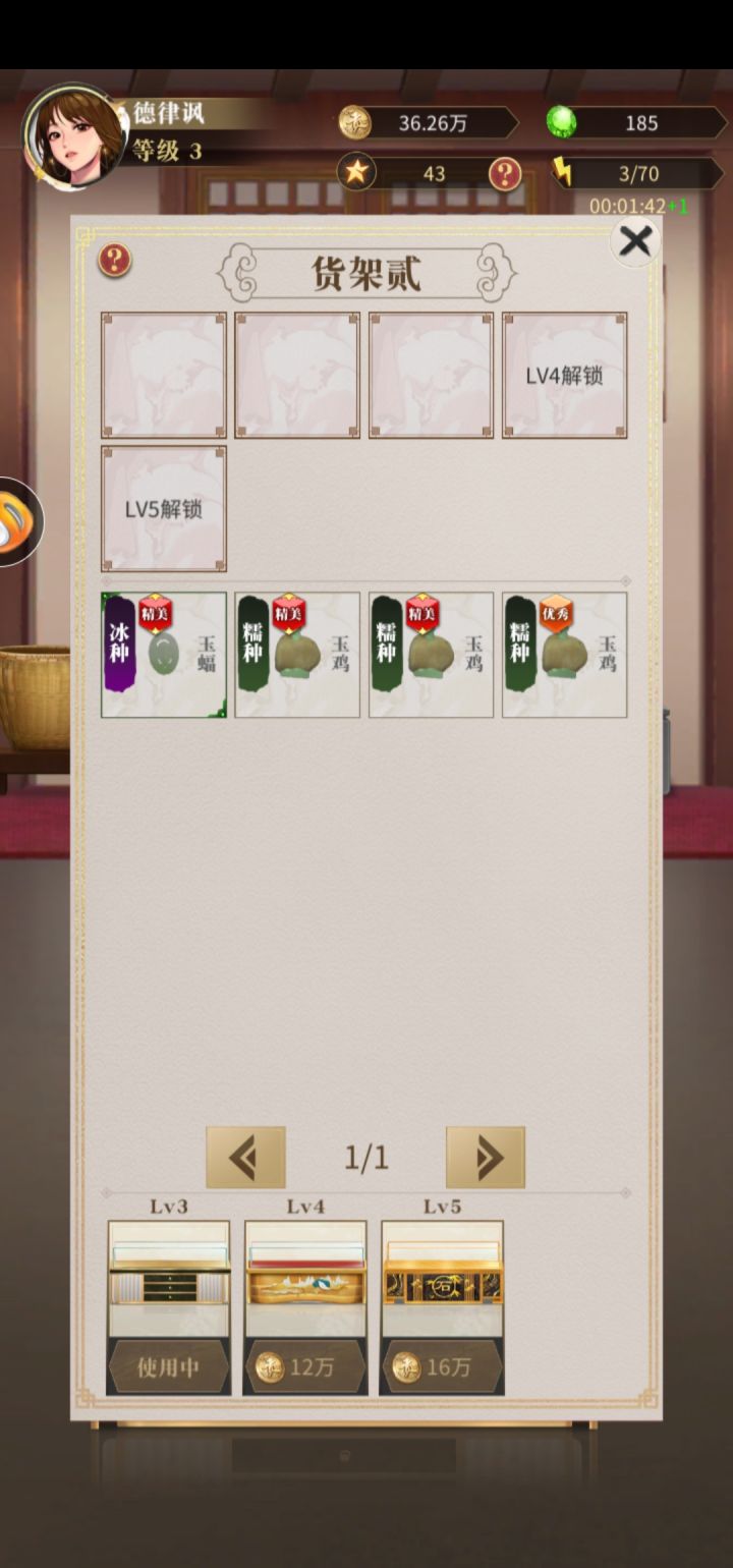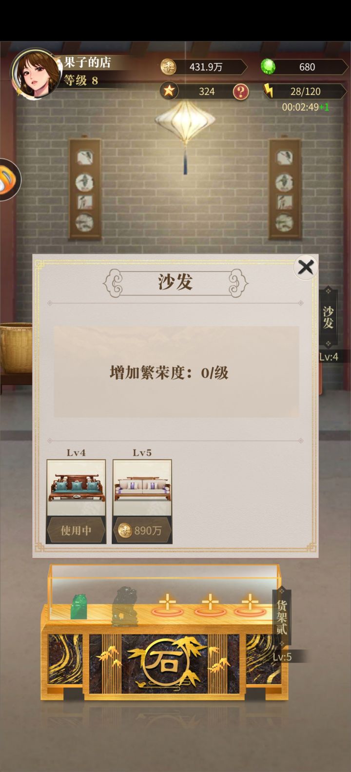 游戏可以提前宣布打通关了。上架关公以后,货架无法操作,沙发字画全消失,也没人到店消费了,打穿了。