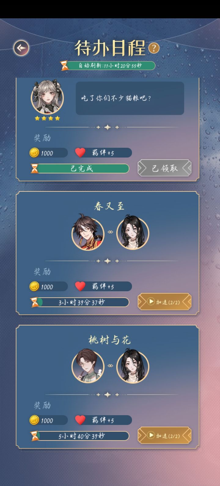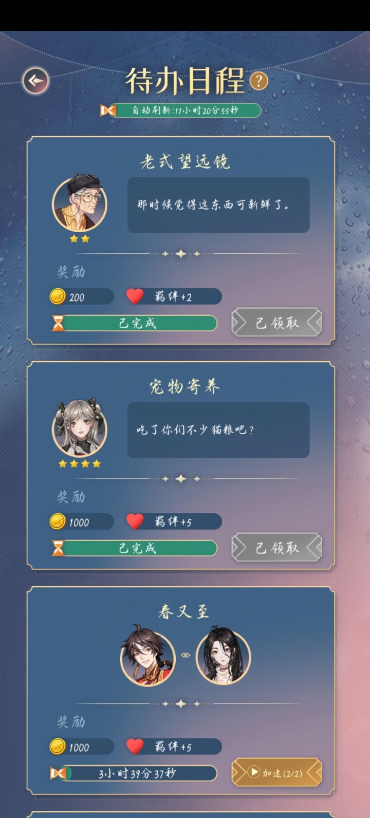 2、看卦、赏月……若是姑娘想,我便陪你一一做过。毕竟,收了姑娘的礼,我也得回赠些什么一一才算公平