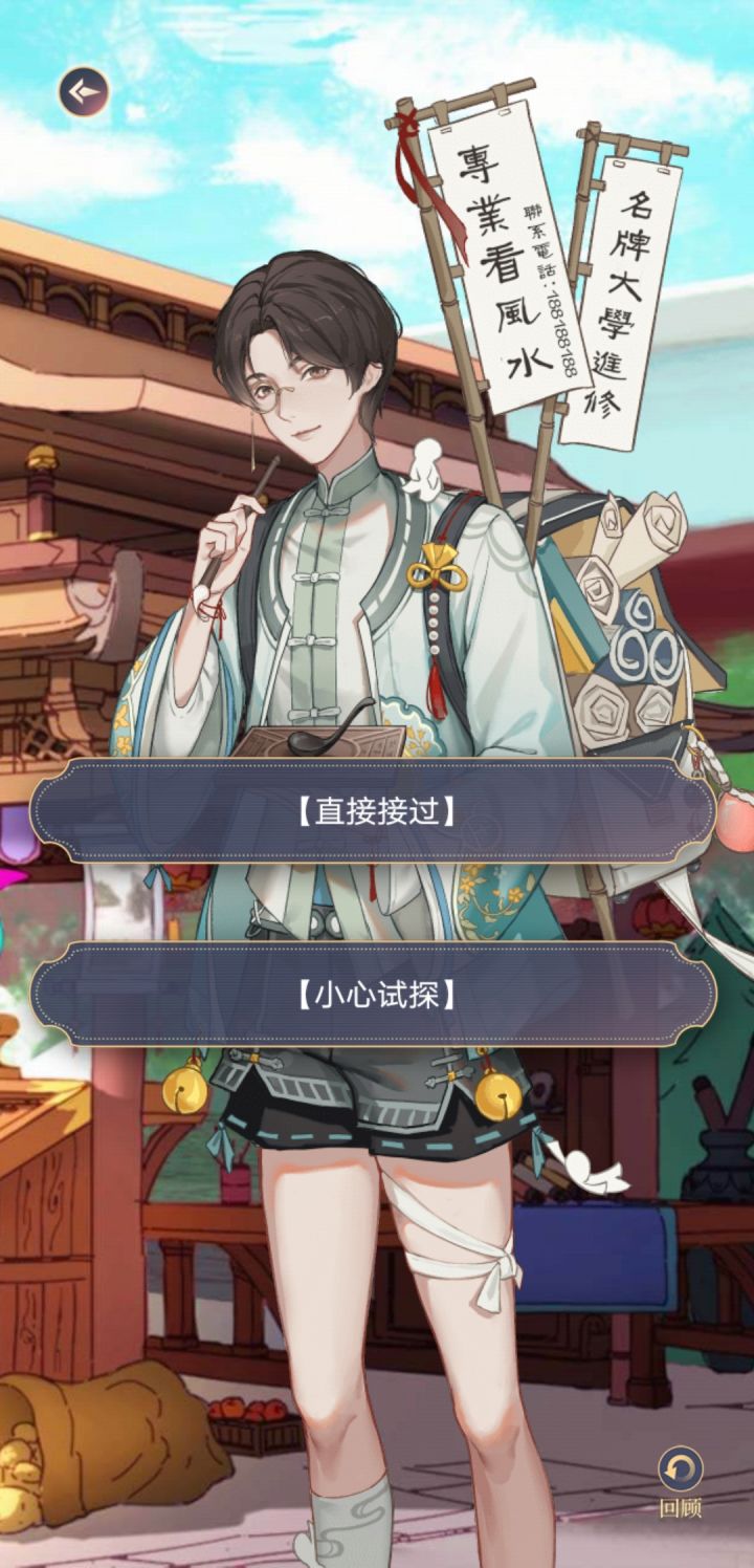 去风水铺子后发现未出摊,找到符德留下来的纸条,按上面所说去往古玩店找程煌,后和程煌一起去灵恩禅院,遇见阿聿,走禅院剧情,后选择<跟着阿聿>或<跟着程煌>