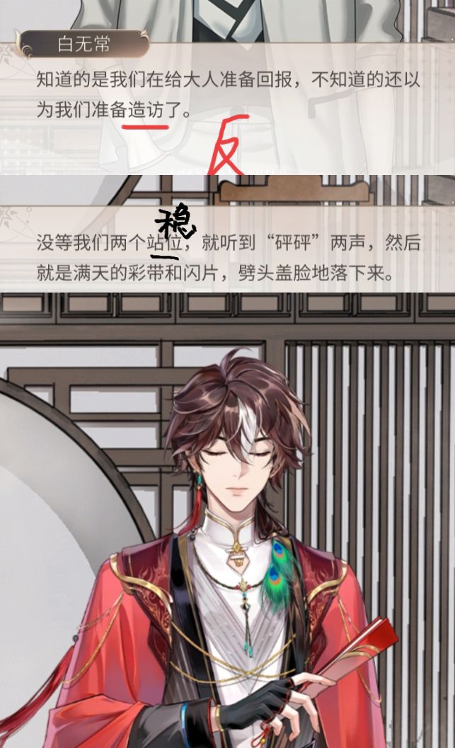 图1,二十五章.363试图谈判图2.3,二十四章.347祭灶(搁这儿等我呢)祭灶选了朱雀,363就会噶(谢谢评论提醒)复活之后就变成聿城走向了P.s.选先说怨鬼,会多一截剧情#攻略