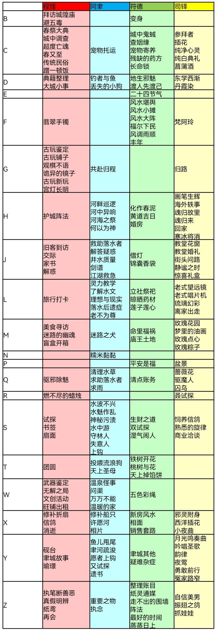 有段时间没登游戏没想到日程多了这么多😓依旧是按照首字母排序重做攻略了(有种预感以后这个excel怕不是会越来越长😂)ps.2023.1.20更新