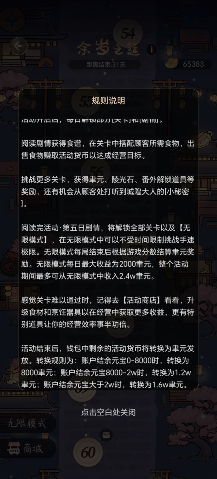 一轮打完现在还有6万多元宝,非常富余(可能是因为我没买过道具),但是后期一局就一千多确实攒的很快,毕竟距离结束还有30多天,是我不应该肝太快嘛( •̥́ ˍ •̀ू )另外活动给了10个道具,还差11个,需要自费55000聿元,感觉有点多了,虽然是自愿购买。(新入坑不太了解以前的活动传统,需要贴补多少之类的)毕竟平时赚聿元的渠道也很少,还是希望能借活动多赚一点