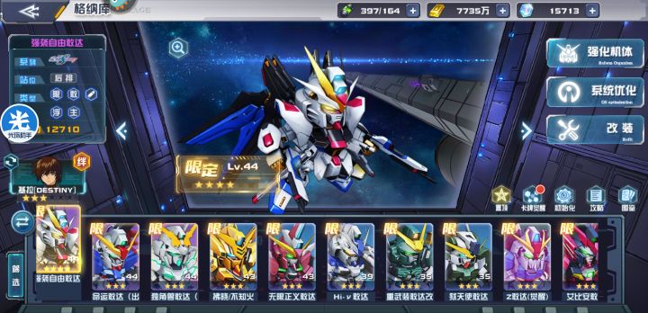 2.萌新白嫖的限定(系统送的),异端红强,量子00,强自(五天乐),不知火和强化00还有艾比安(后面章节送)。