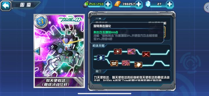 勤劳的小记者来咯,替指挥官们汇总了下目前《敢达决战》游戏中部分主流机体拥有的技能状态,以便让玩家更清楚的了解技能与快速搭配机体。技能状态降低攻击频率带「降低攻击频率」效果技能的主流机体:狱天使敢达(最终决战仕样)(限定,敢达,射击,后排,浮游炮,多模)改装第三层:旋转射击强化神敢达/明镜止水(典藏,敢达,格斗,前排,多模,主角)羁绊技能:流派·东方不败雪崩型能天使敢达(限定,敢达,格
