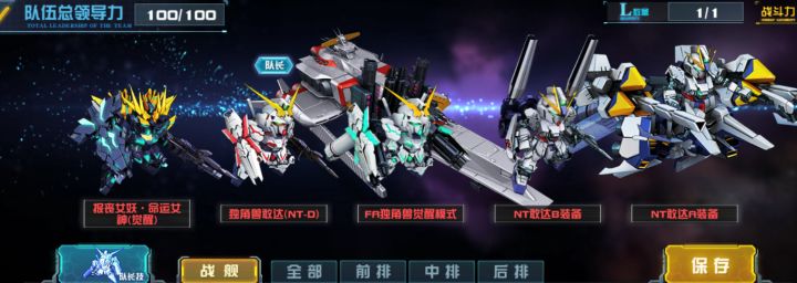 随着新机体不断加入,全服赛的格局也在不断变化,胜负就在一瞬间,没有常胜的队伍,也没有必败的队伍,如何搭配,如何调整队伍顺序变得至关重要,以下是本期全服赛推荐阵容。阵容一UC系列队报丧女妖·命运女神(觉醒),独角兽敢达(NT-D) ,FA独角兽觉醒模式,NT敢达B装备, NT敢达A装备队长技:独角兽敢达(NT-D)战舰:拉·凯拉姆搭配思路:近段时间,UC系列队伍没有发生太大变化,而在前