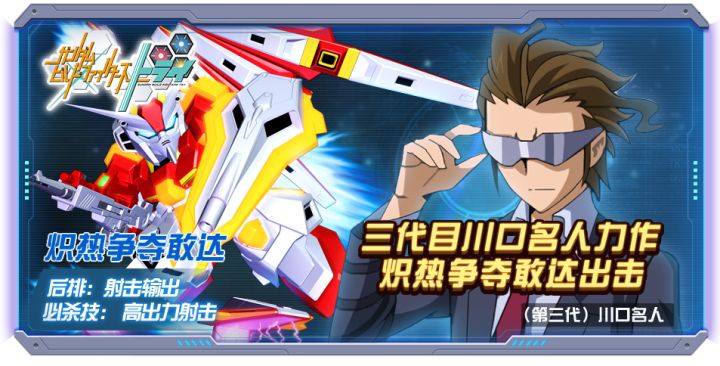 尊敬的指挥官阁下,3月新机炽热争夺敢达登场!该机体出自《敢达创战者TRY》系列外传,将作为后排机体出现在《敢达决战》战场,让我们一起期待下吧。机体介绍为了适配尼尔森实验室新研发的普拉夫斯基粒子而制作的“争夺敢达”中的一台,由第三代川口名人改造而成。技能展示研发中内容请以实际为准研发中内容请以实际为准研发中内容请以实际为准机师介绍圣凤学园高等部3年级。第6回世界锦标赛的参赛者,是拥有