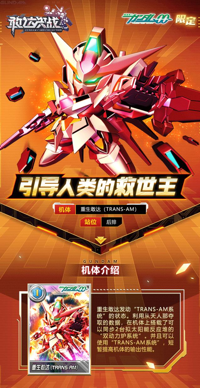 尊敬的指挥官阁下天气渐热,夏日来袭5月限定机体重生敢达(TRANS-AM)应召而来!—✦✦✦—先来看下机体介绍吧