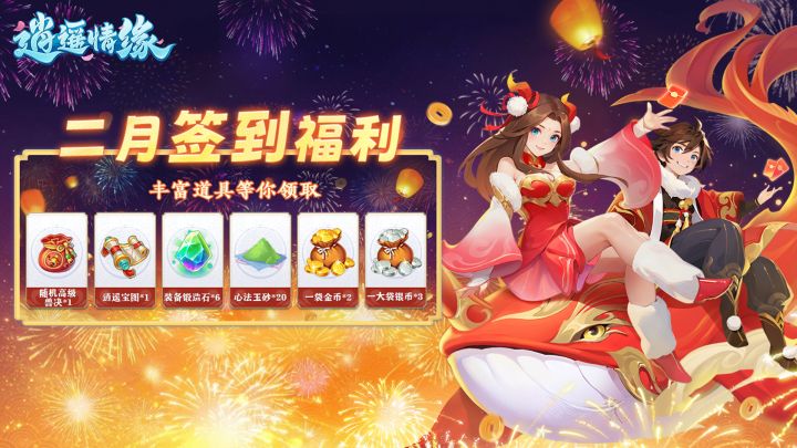 少主们好呀!逍遥情缘12月签到活动今日正式开启啦~~!完成签到可得高兽决🎁🎁快呼朋唤友一块参加活动叭~~ 点击下方链接即刻参与签到👇👇👇⭐每日签到奖励一览📅第一天:一大袋银币*1📅第二天:装备锻造石*1📅第三天:心法玉砂*10📅第四天:随机五宝礼包*1📅第五天:一袋金币*1📅第六天:装备锻造石*2📅第七天:逍遥宝图*1📅第八天:一大袋银币*1📅第九天:心法玉