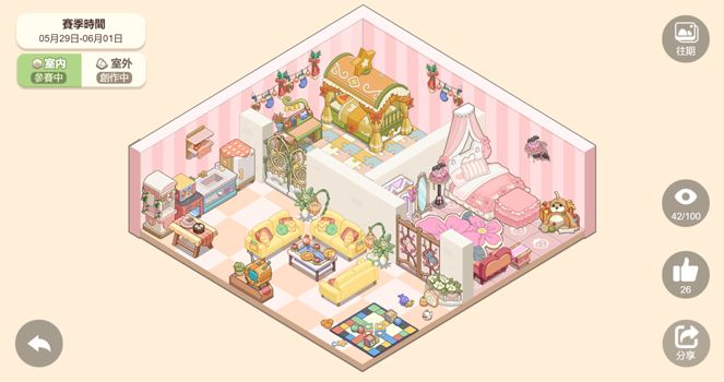 有着装饰设计梦想的城主大大一定不要错过这个比赛~在这里,无论你喜欢高山流水还是温馨小宅,一切都可以根据你的想法尽情展开创作,秀出精心设计的布局时,还能赢取奖励哦。布局大赛参赛 等级树达到一定等级会解锁布局大赛,在主城界面点击左下角的”三角尺铅笔“图标即可进入大赛界面。城主大大可通过参与室外和室内的布局比赛,争取上排名榜赢奖励。布局大赛每周一至周三、周四至周日为1期,每期开启后即可进行布局创作,