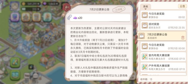 对于游戏内开启广告功能,主要是为了照顾部分玩家加速、补货目的的游戏体验,但也让很多玩家感觉很不好,而且开服版本我们没有加上提前关闭功能,甚至还有误点不能关闭的极端恶劣体验。为此我们今天加急做了个优化版本,希望能补救大家对我们广告的印象,我们希望是克制的是对大家有益处的。1、加速类广告限制提高为只出现15分钟以上加速的才出现看广告按钮,这样大幅减少新手广告低价值的次数。2、优化误点广告有可能存在