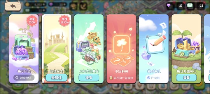 特别想问一下,说好的没广告,现在是什么情况呢?我一直都想吐槽,这么一个游戏,想玩的快就只能氪金,小氪还不行,游戏里面黄金卡,月卡,基金(基金怪搞笑的,30级前一个,30级后一个),双周卡等等,真的为了钱无所不用其极。其实玩这个游戏,从七月一直玩到现在,只是因为无聊的时候点点点里面的小游戏,打发时间,之前说没有广告,然后改成每日上限100,现在改成必需要看广告,真心失望透顶。