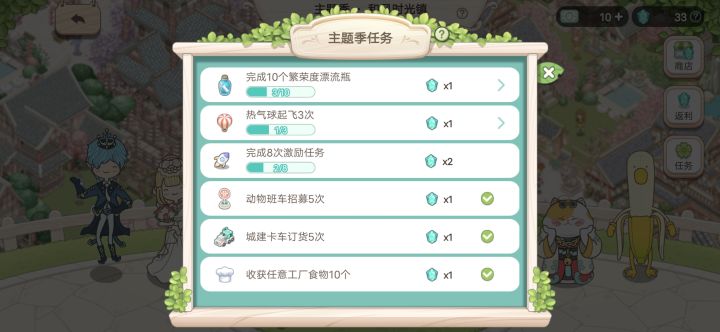 入坑需知,此游戏可以白嫖的。 大家可以看图片,就是游戏里面主题季的任务,做任务可以给水晶或者是免费一抽的(免费一抽等任务做完刷新,有时会刷出),给的水晶可以1:1换绿钞或者是换你想要的限定,然后就是抽转盘还会给返利(抽次也可以白嫖)。 然后还有一个白嫖就是钻石,钻石可以买主题也可以买装扮之类的,钻石可以做主线获得。还有一个白嫖点就是福利里的幸运翻牌,每天可以翻好几次,里面会有金币,钻石或者动物碎片