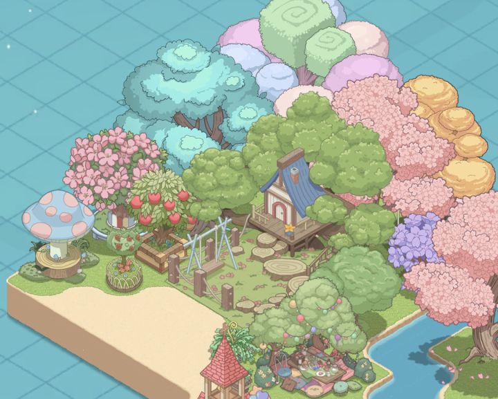#梦幻的城布局大赛# 搭了一个森林婚礼小场景p3试着搭了一个小两层,可物惜品太少了hhh想要营造树多但是不乱的效果,不知道有没有达到#梦幻的城治愈之旅