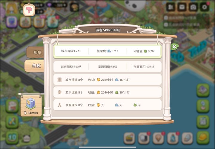 非常感谢上次城主大大们的建议,下载玩了玩,感觉还不错。现在LV.10,2万6多的金币,350多的钻石,钞票0,没有氪。就是我非常想知道,为什么我这里的繁荣度是6717,环境值是6697,在升级的板块繁荣度只有1767,环境值只有1747啊?希望有比我等级高的城主大大为我答疑解惑!