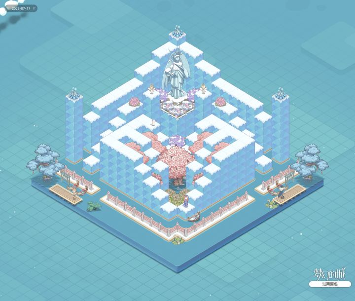 #梦幻的城布局大赛# 改了那个冰立方大台阶的模板,做成了类似天使花神神殿一样的效果(目移)地基如P2。总的来说由五个部分组成。1.冰墙和冰柱。冰墙就是背景那片墙,冰柱在两边各有一根,最顶端都用那个冰花盖了尖儿。值得一提的是,我后面放了两只萨拉曼德,但位置是随机的,如果有被随机到冰墙上的,它就会毅然决然地爬到最高的那一朵冰花上坐着……在花神像的头顶上……然后就不下来了……哎呀,小六角龙能有