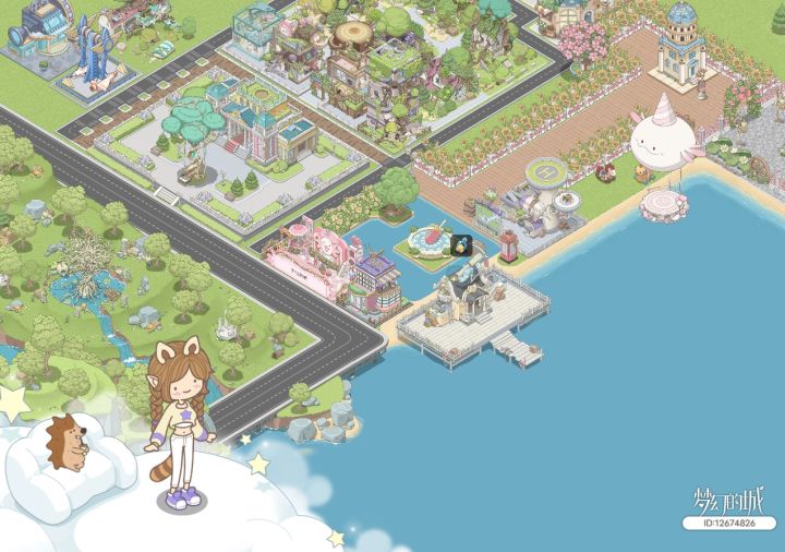#梦幻的城# 岛上的花坛和草地都布置成水果的形状,如草地上长出的巨大草莓,花坛中开放的色彩缤纷的水果花朵。阳光透过树梢照在岛上,形成斑驳的光影,为整个海岛增添了一份神秘而迷人的氛围。#梦幻的城治愈之旅