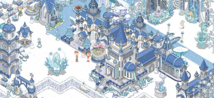 #梦幻的城# 雪在下着,飘飘扬扬从天上落下,落到城堡上;雪地中,有几块晶莹的冰雕,在闪闪发光。树,被雪穿上了衣服,白帽子,白棉袄,好一个纯白天地。#梦幻的城治愈之旅