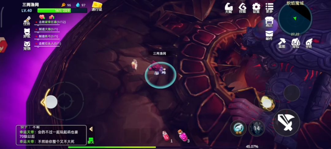 首先枪技能无伤boss是看了《爱丽丝》小伙伴发的,由于我之前乱点技能,现在枪的第三个攻击技能还没出来,感觉只靠技能打火魔感觉有点慢。 于是乎,我废了好多药,还翻车一次,终于找到这个点,但实现起来起还是有点考验操作。视频里是点了宠物技能加速,然后站在(26,21)这个点,boss刚好打到你,你也刚好能用枪打bosa。打完一发扯呼。 为什么要选择枪(biu)呢,首先枪的攻击距离比刀锤和冷枪远,才有了普