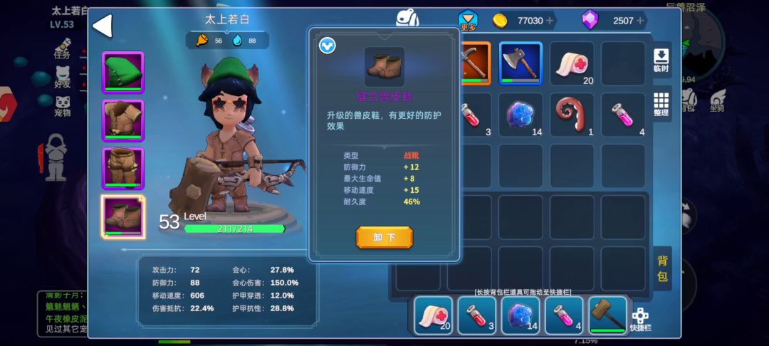 我装备大家都看到了吧还带了件首充衣服然后就布甲 布鞋的25级都可以做 刀也可以拿25级的最好是橙色的拿来拉怪刷怪带高效率 最后剩下两个扫地机器人和机械龙可以换弓来拉扯 重点来了 装备最低25级布甲衣服 刀(橙)和弓 祭坛最低拉到二级拉满横扫红色铭文的属性(组合刀技能的效果) 假如你问我为什么拿刀不拿弓 后面几个远程怪看到了吧 根本没时间让你放技能 你说机械龙最高奖励应该也就掉阿尔法蛋了吧 切记用技