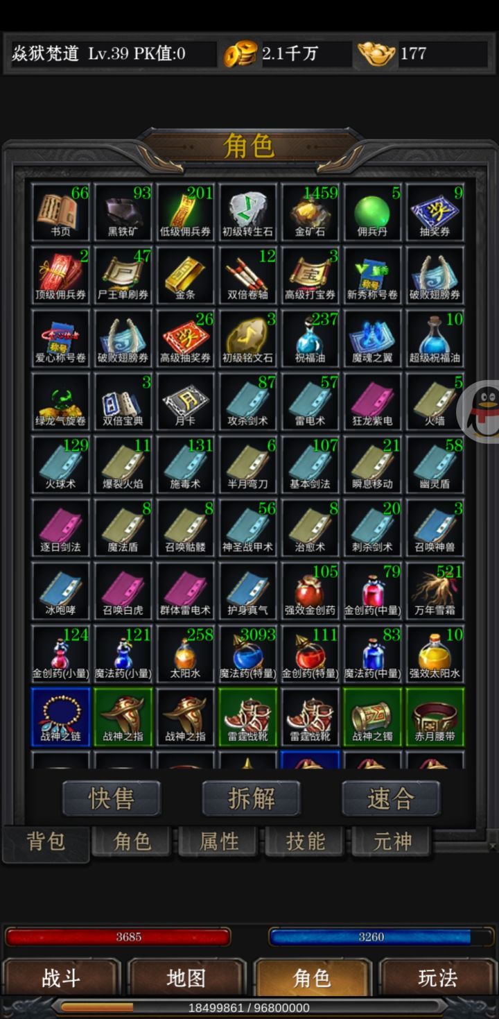 4.弄完了一转立马去一转地图挂机,挂两套潘月,一套自己穿一套佣兵穿,攻击防御血量开始产生质变。