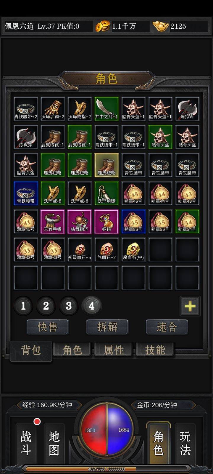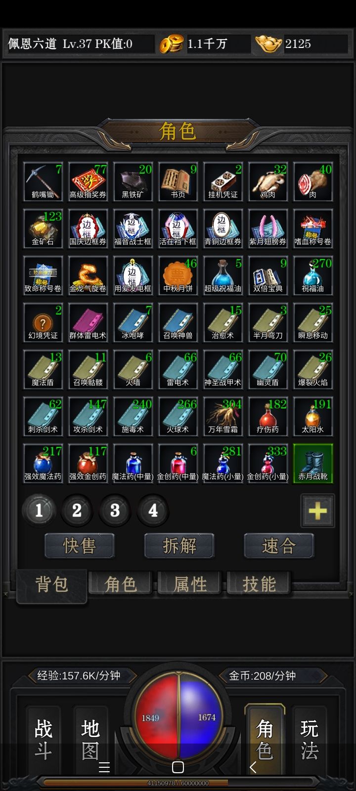 昨天晚上玩到12点多才下线,主要是为了领取大魔石(早知道就不闲的没事升五级小魔石,花200万买个中魔石),然后就去刷个人尸王殿,刷了两本神兽,七本冰咆哮,一本群雷,建议出个。。。就是用技能书来兑换书页,书页也能用来兑换技能书,毕竟如果光靠打,那要打到猴年马月