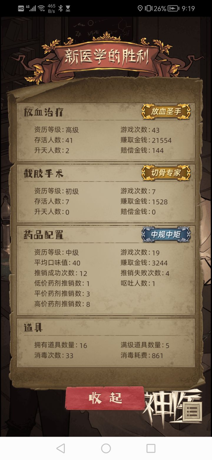 1).刀具。选啥锯都行。消毒解锁后一定要保持干净状态!不要省那点小钱,消毒的钱跟赔偿的钱比还是少的。 2).辅助器具。我习惯用舒适握把和萃取液。也是一定要保持干净状态! 3).观众。点满点满点满!不用管感染! 4).麻醉。直接不麻醉,观众热情度长得快,不用担心病人。 5).手法。左手托住手机,右手胳膊肘找个支点撑着保持稳定,食指与中指快速交替点击左右。直接点到顶然后就不用点了等指针放下滑,滑到黄色快到底了还没到100%的话就再点几下。 6).止血。直接选烙铁。别选缝合,选了的话观众热情度没了 ★注意事项。 ①一定一定所有器具保持干净状态!否则感染速度太快了。 ②食指与中指交替点箭头一定一定要快!如果指针升上去的速度慢的话观众不开心而且病人也容易死。 ③点到顶就不要继续点了,持续在红色状态里病人必嗝屁。 以上。