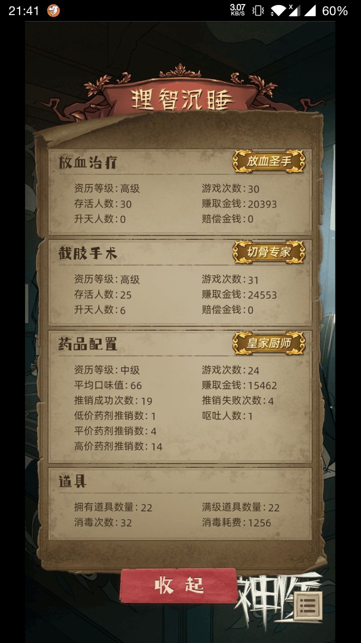 希望能开放自由模式(可以自己做手术不受剧情影响),而不是单一的走剧情,另外看50次广告后后面的都不用看了好评。希望开放更高级别的称号,然后开放更多病例,比如切割不同地方,用的🔪加成就不一样,还有就是椅子那些道具可以根据人物性格、身份、健康程度的不同加成效果也不同。