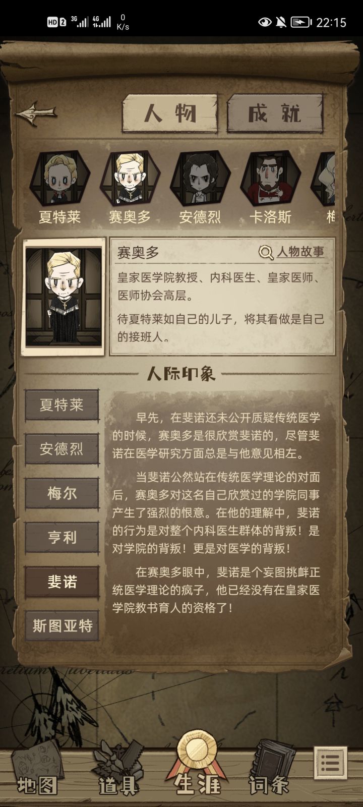 感受。。。剧情太死板玩得没意思,剧情上无论选什么导师一定会死这就真的没意思,应该分两个分支,死了和不死两个走向,如果剧情让你选择什么导师都会死,显得乏味,如果我玩100遍还是两种结局额,我可能玩两次不会玩了,如果开放有10几二十种结局,有些结局还比较难触发那才有意思。第二点,剧情多次提到显微镜,和尸体,为什么不开放显微镜研究,研制药的玩法呢,比如有个人得了病,普通的药不能治疗,要通过显微镜观察