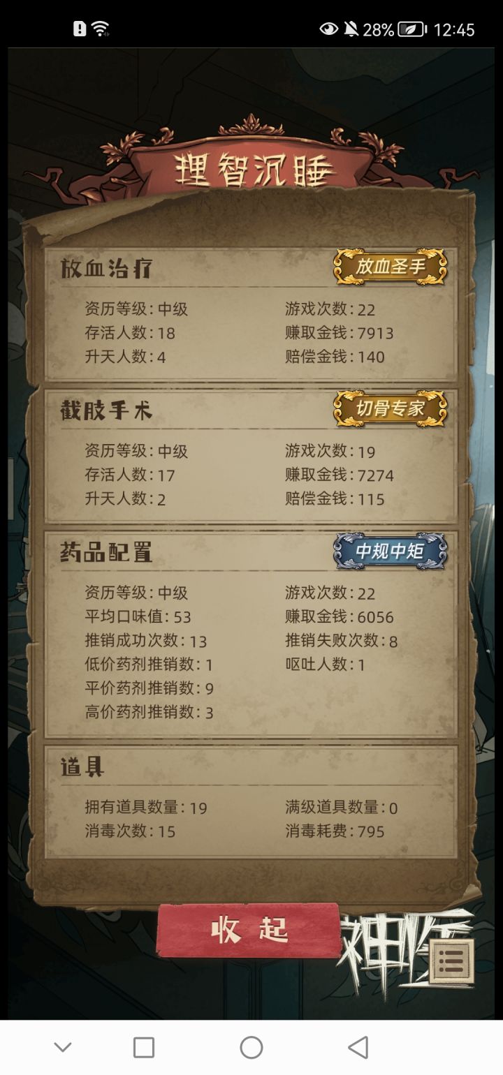 我 是 庸 医建议入选本游戏经典反正四香料药物也吃不死人,口味还好喝,纯香料水比用真药卖的价格多得多,治病与我无关,我只要钱嗷本意是降低疗效平衡口味做难度的机制,现在反向操作却发现没有限制,建议官方考虑一下改一改药物系统,比如加入名誉和投诉等,不然我铁定庸医到底了