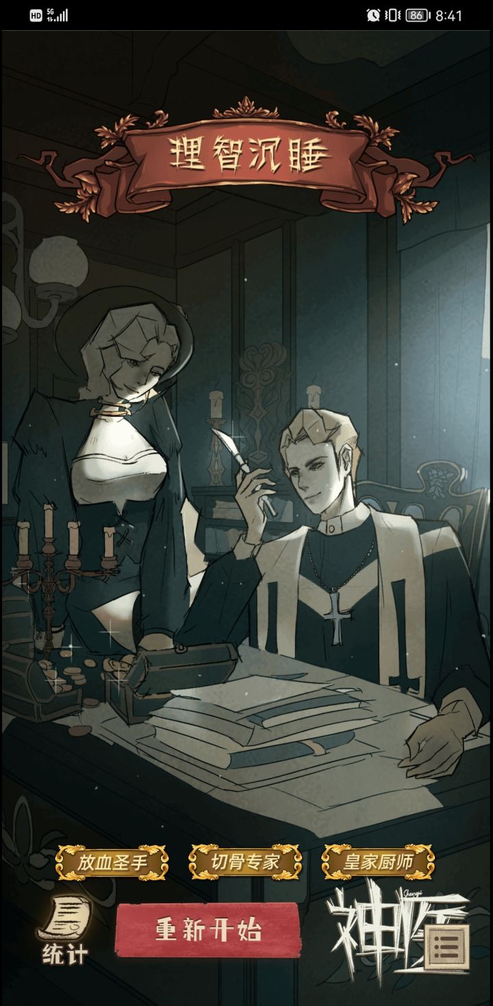 奥赛多教师的善待与爱护,高官贵族和医师协会的压力,在第一次结局难以坚持真理,为了恩师为了生命。是个好游戏,对于中世纪欧洲医学的科普很让人舒适,任务的压力很小很轻松就能完成,剧情的走向虽在意料之中,但每一个选择还是能让人纠结,徘徊。